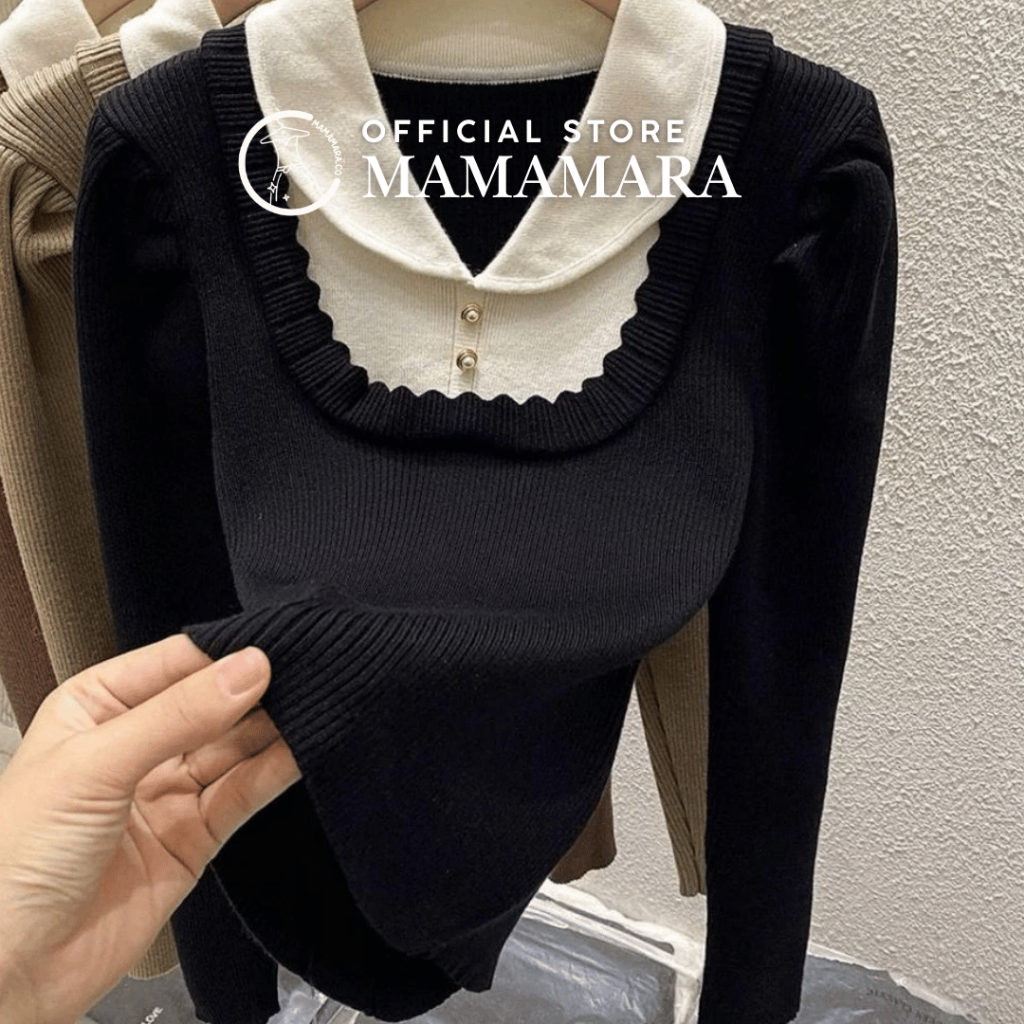 MAMAMARA - ATASAN WANITA LACE KERAH RAJUT KNITWEAR INNER FIT BODY WOL SANTAI