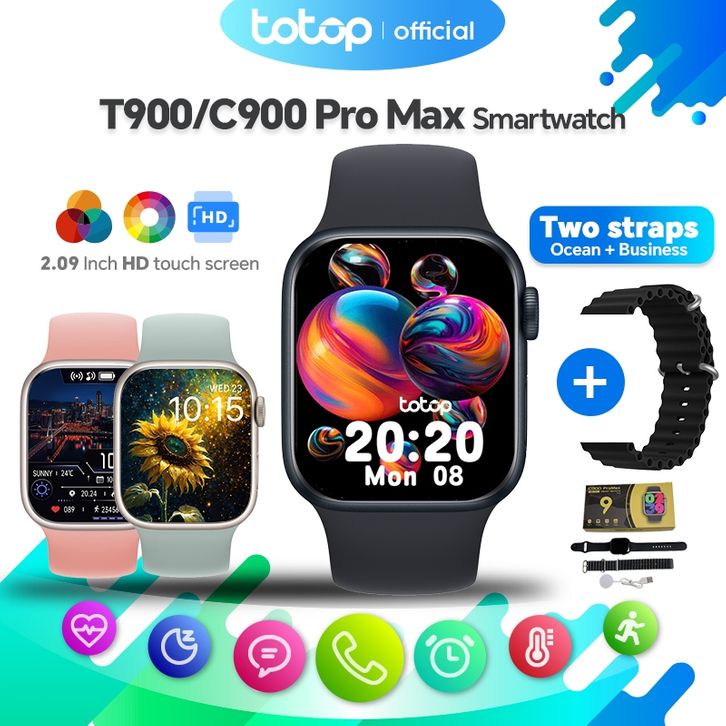 JAM TANGAN PITAR TOTOP SMARTWATCH C900 PROMAX FASHION BLUETOOTH SMARTBAND TWO STRAPS 2.09 INCH HD SCREEN FULL TOUCH