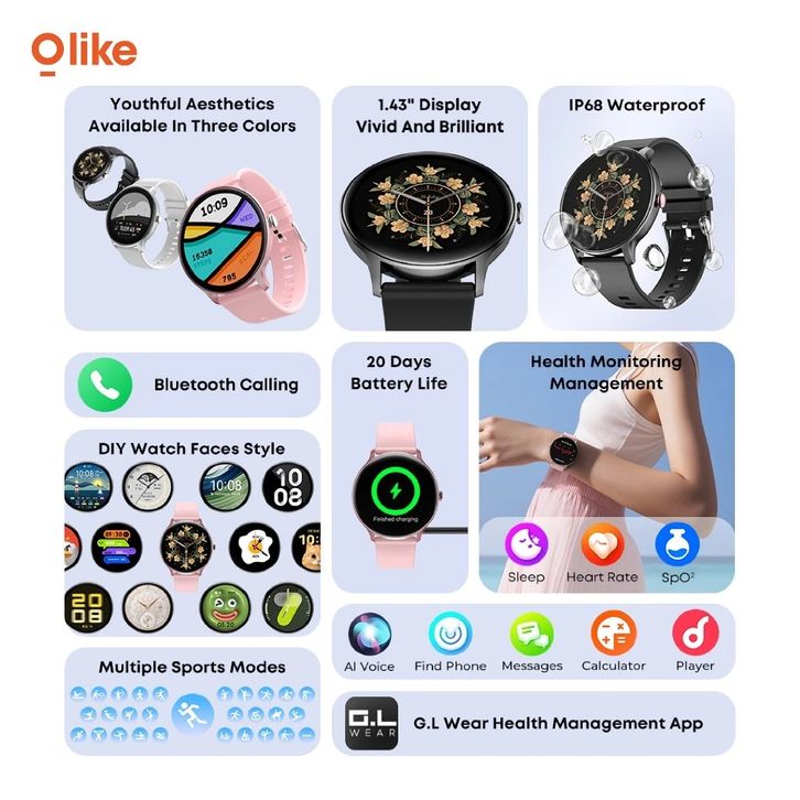 OLIKE SMARTWATCH PRIA WANITA JAM TANGAN PINTAR FW6 TAHAN AIR IP68 CALL 1.43" ISPLAY HEALTY MANAGEMENT 20 DAY BATTERY