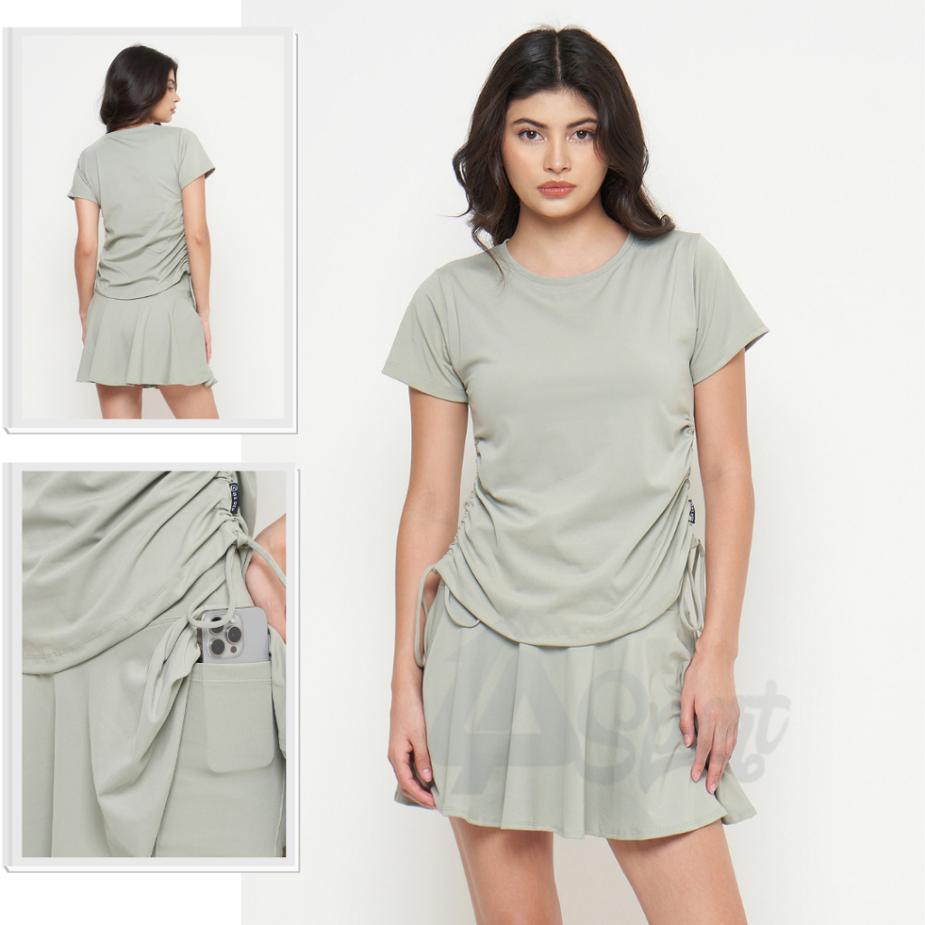 Setelan Atasan Serut Lengan Pendek Rok Setelan Olahraga Wanita Setelan Senam Wanita Setelan Zumba Wanita Kekinian