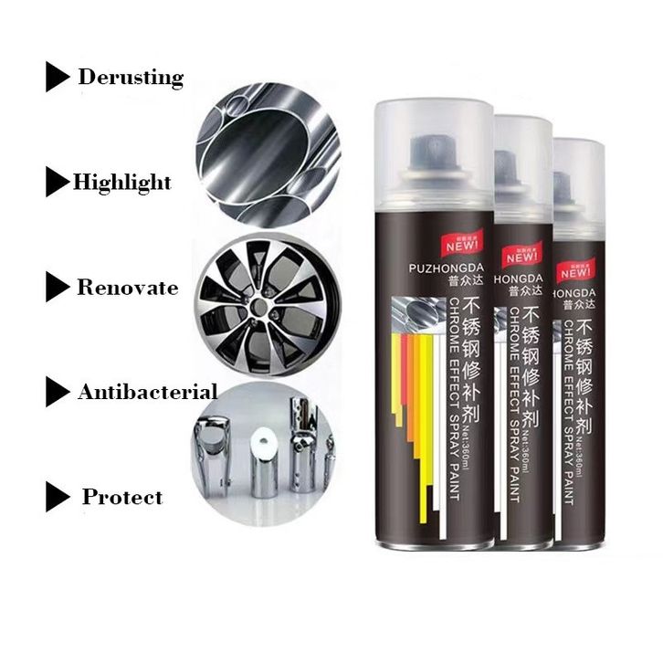 360ML Cat Semprot Chrome Sapporo Chrome Spray Paint Anti Karat Warna Stainless