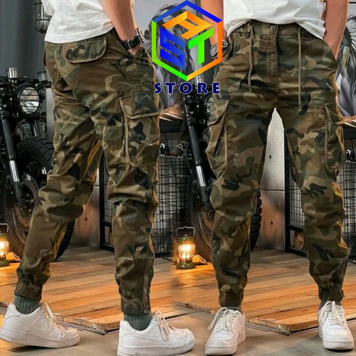 celana joger cargo panjang pria wanita camo cargo combat celana loreng panjang pria warna Black