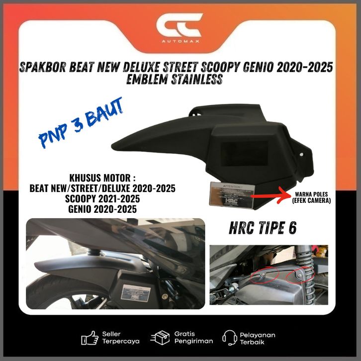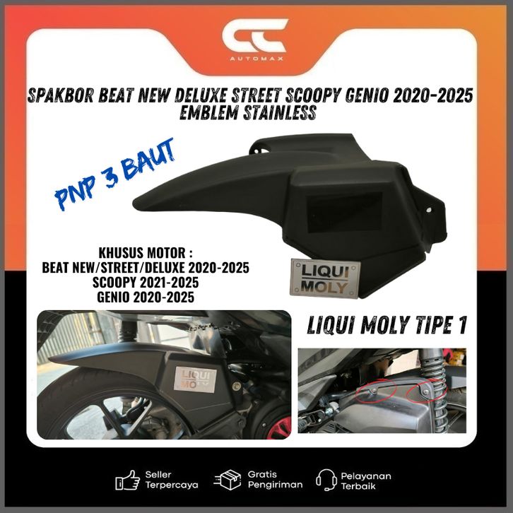Spakbor Kolong BEAT NEW DELUXE STREET SCOOPY GENIO 2020-2025 PNP 3 BAUT + EMBLEM STAINLESS