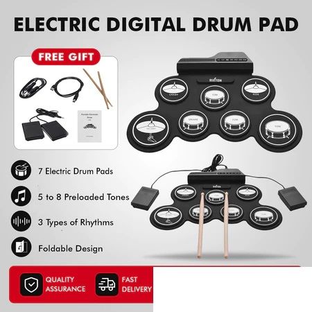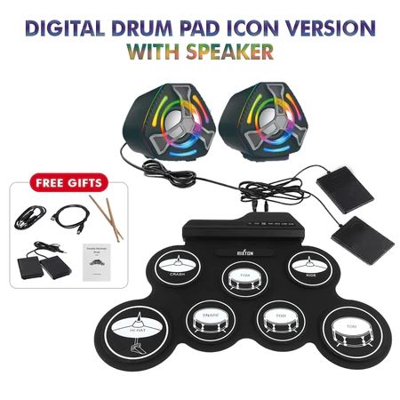 Rixton Digital Portabel Drum Roll Drum Elektronik Perkusi Portabel Silicone Hand Roll Drum Kit Drum Jazz USB Elektronik