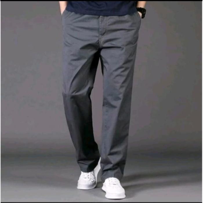 [PROMO] CELANA PANJANG PRIA KARET CHINOS STANDAR JUMBO PREMIUM CASUAL KOREAN STYLE TERMURAHHITAM M