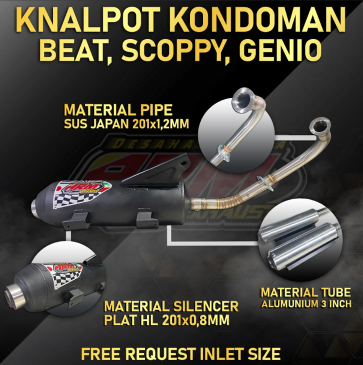 KNALPOT KONDOMAN RACING MATIC HONDA 110CC , BEAT, SCOOPY, GENIO