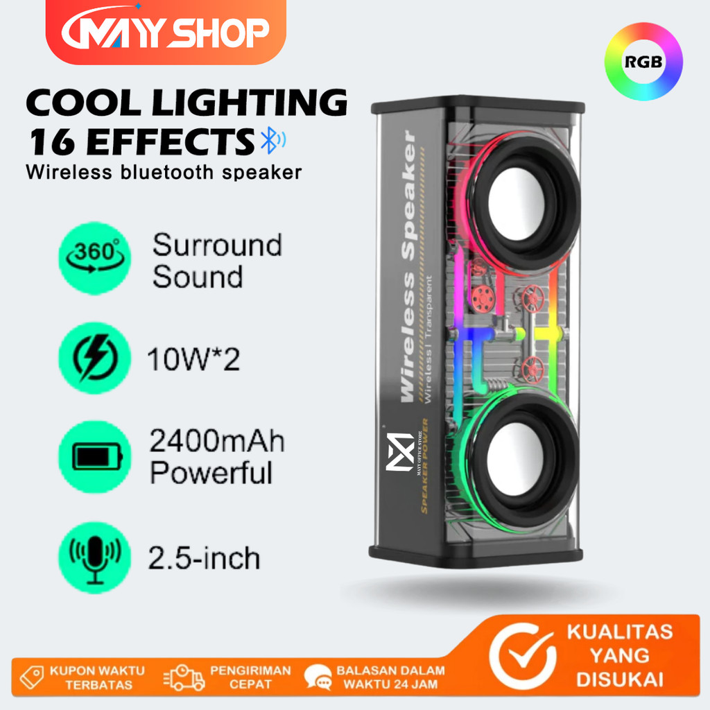 PROMO MAYY MECHA SPEAKER BLUETOOTH SUBWOOFER MERIAM BAJA KECIL TRANSPARAN V8 AUDIO PORTABEL NIRKABEL 13W