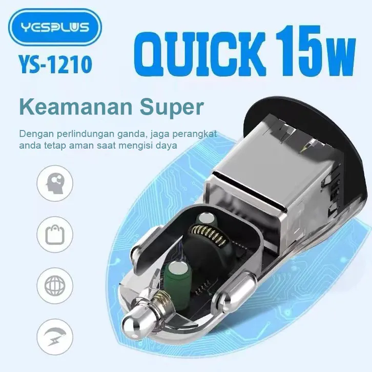 PROMO New Transparent Car Charging YESPLUS YS-1210 Charging Saver Dual Port 3.1A 15W Fast Charging USB