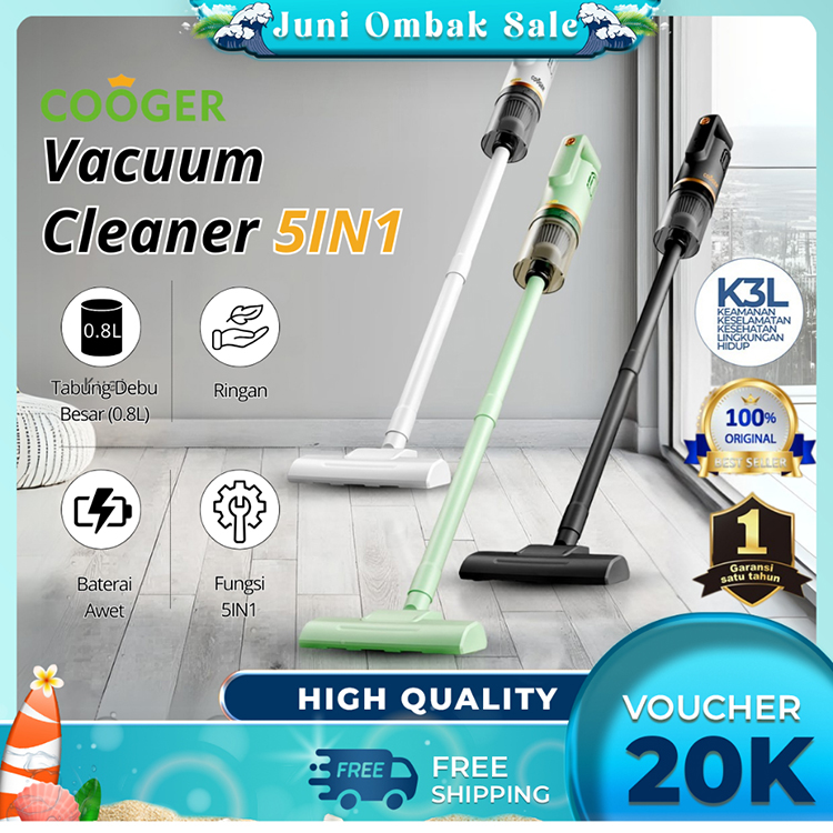 Vacum Cleaner Cooger 5in1 Vacuum Lantai Penyedot Debu 5in1 Dengan Gagang Panjang Hijau Alat Penyedot Debu Serbaguna