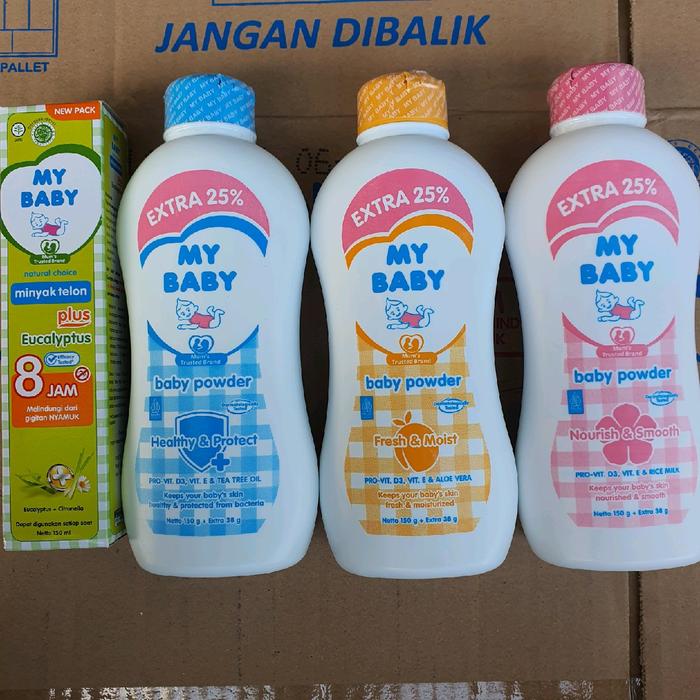 Paket Perawatan Anak Bedak My Baby 150gr Ekstra 38g dan Minyak Telon Plus My Baby 150 ml