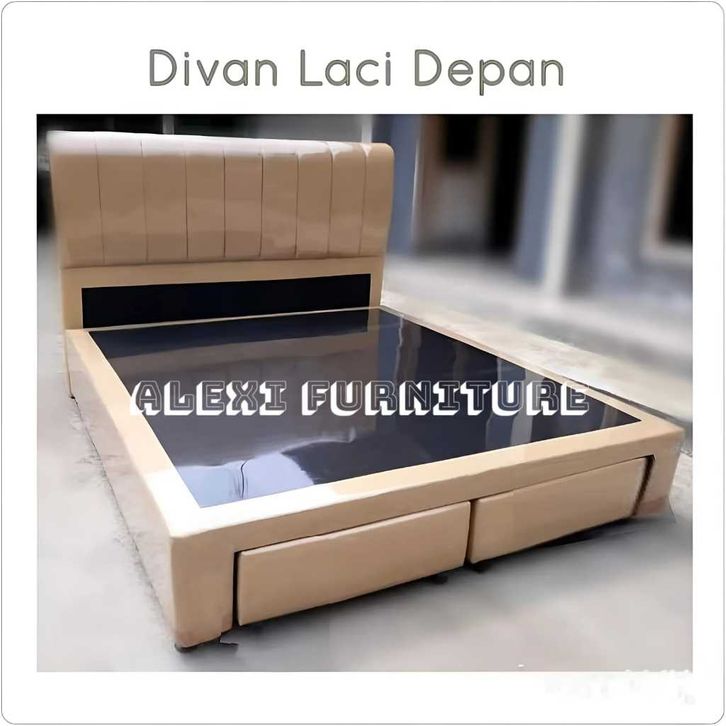 Dipan kasur 180x200 Ranjang Divan Difan Laci + Sandaran Salur Bahan Oscar Furniture