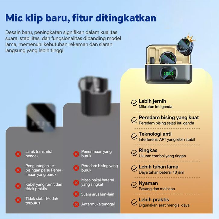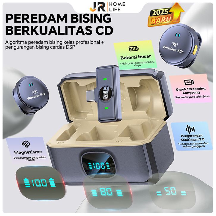 Microphone Microphone Original Mikrofon Lavalier Wireless 2 Microphone Dengan Digital Display Plug & Play Portable Magn
