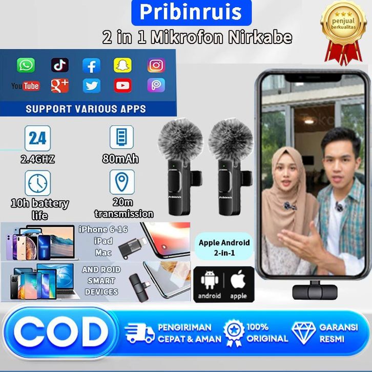 Microphone Microphone Original PRIBINRUIS【】2 in 1 Mic Mikrofon Nirkabel Lavalier Hp Bluetooth /Plug & Play/ Lavalier /