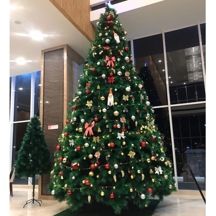 Pohon Natal Daun Jarum Hijau Polos Semi Salju Christmas Tree Besar Pvc Luxury Pohon Terang Cemara Dekorasi Hiasan