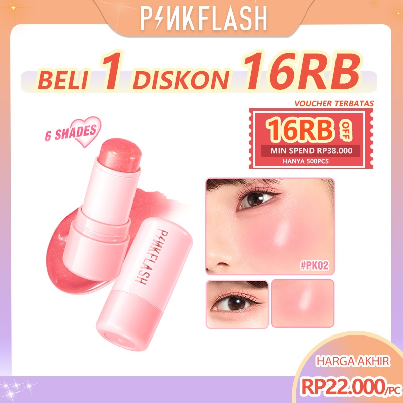 Pinkflash Multi-Use Moisturizing Watery Blush Stick Long-Lasting Beginner-Friendly Rosy Cream Blush On Healthy Blendeabl
