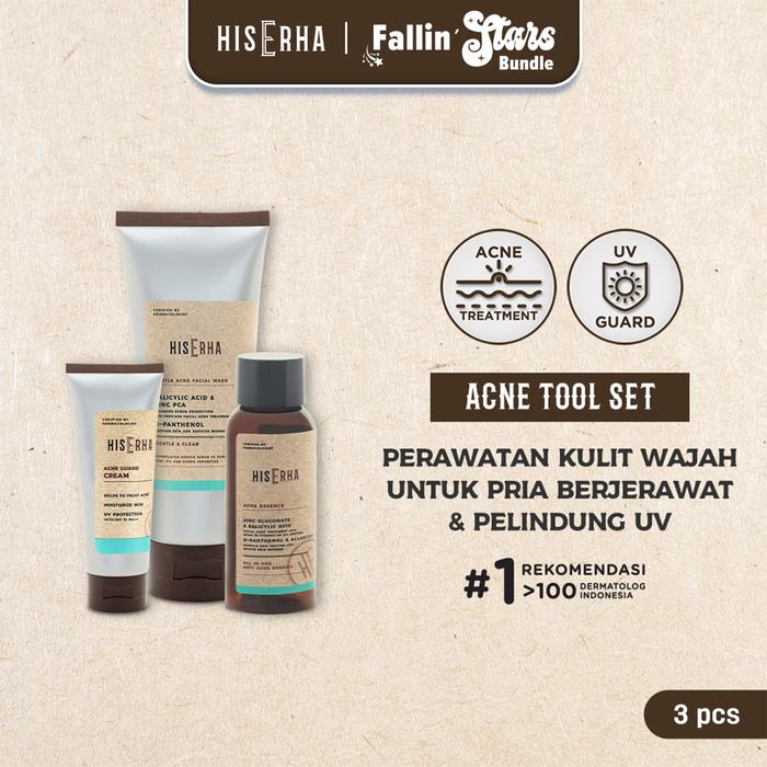HISERHA MANTools Set Perawatan Wajah Pria Berjerawat / Kusam: Facial Wash Essence Guard Cream Brightening Cream