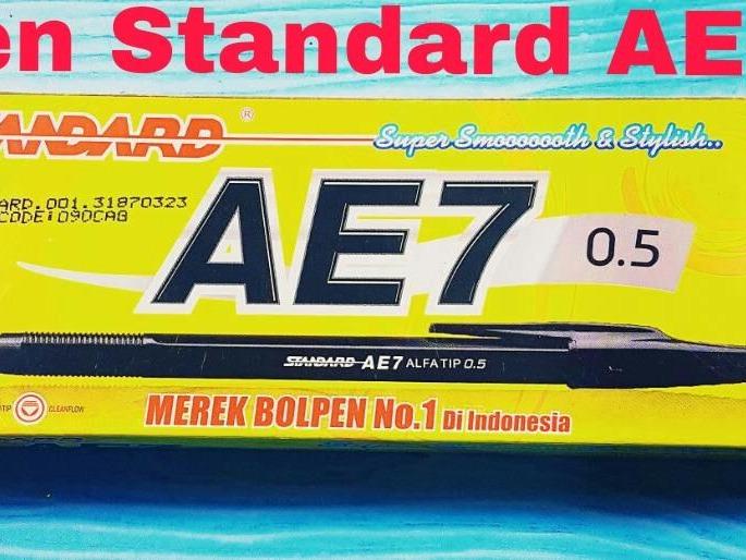 Pulpen Standard AE7 - Pack isi 12pcs Warna Tinta Hitam Ukuran Mata Pena 0.5mm Stationery Merah