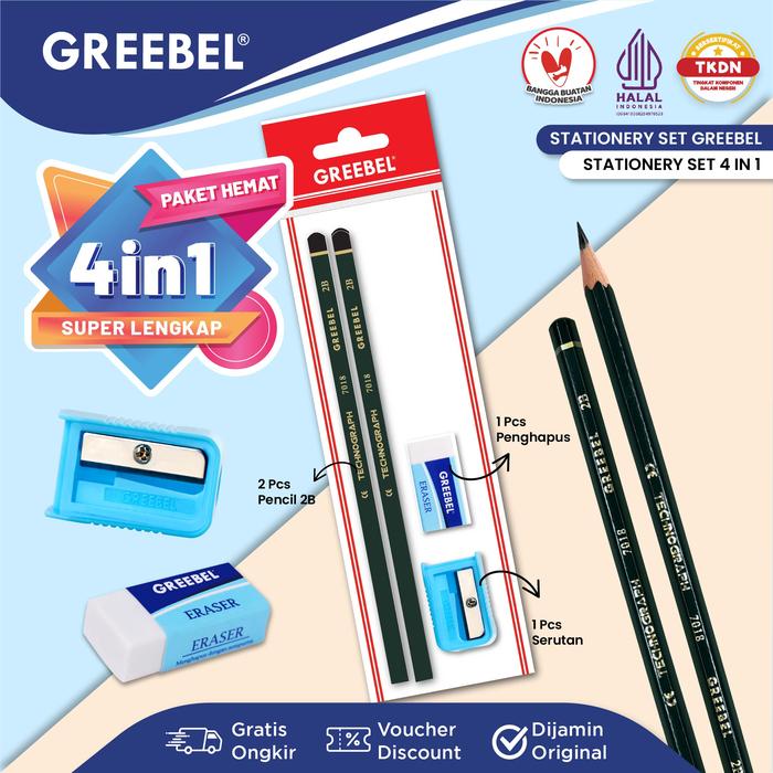 GREEBEL Pensil Set Alat Tulis Anak Sekolah (STATIONERY SET 4 IN 1) / Stationery Set Paket Alat Tulis - Stationery 4 in 1