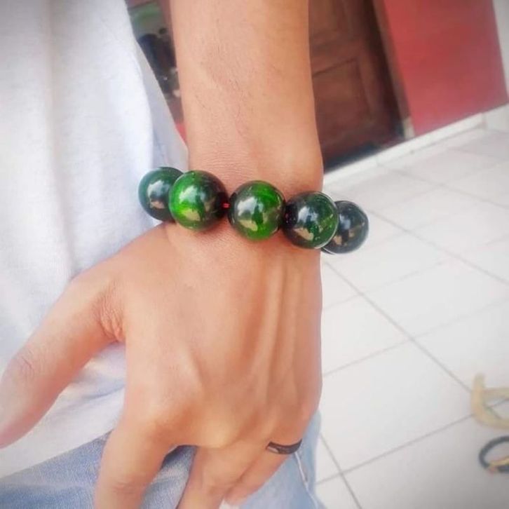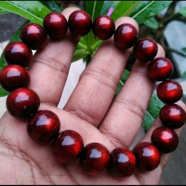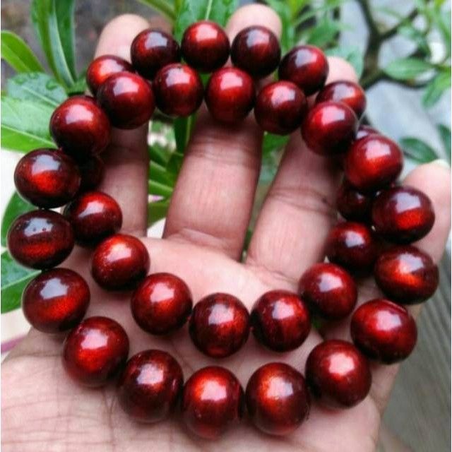 GELANG AKAR BAHAR MERAH DELIMA TEMBUS CAHAYA 12MM