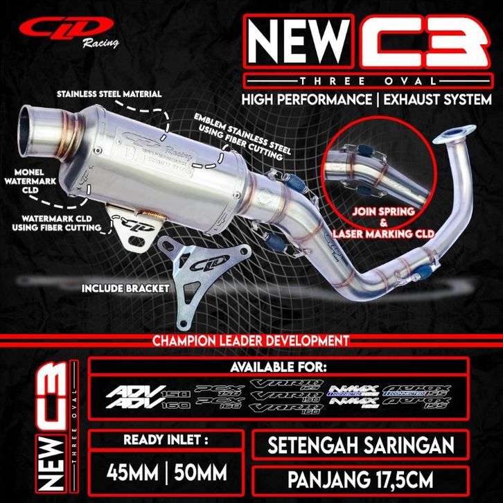 Knalpot CLD Racing New C3 Vario 125 Vario 150 N max Aerox Lexy Pcx 150 Pcx 160 Adv 150 Adv 160 Vario 160