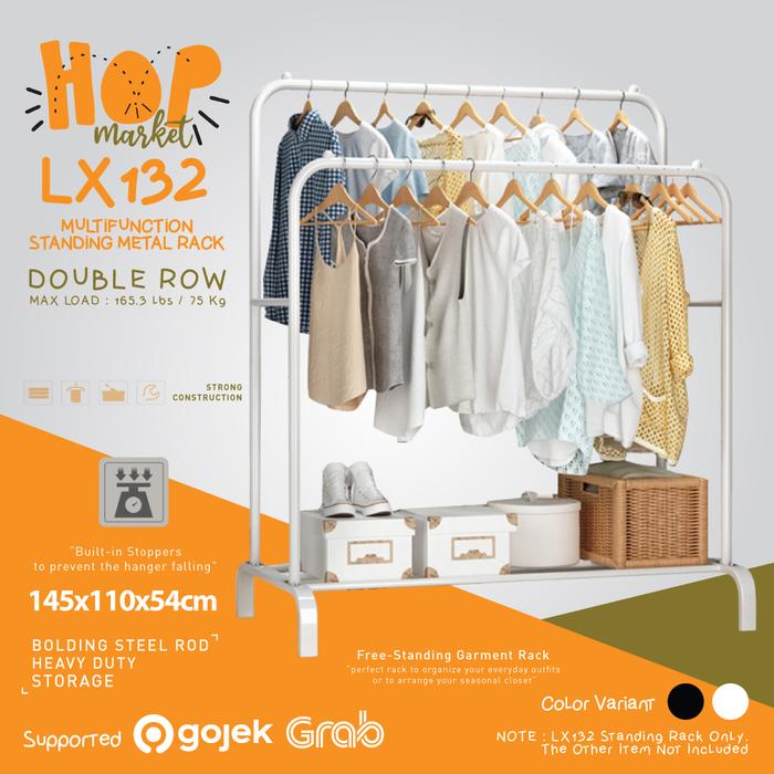 HOP LX132 Rak Serbaguna Gantungan Pakaian Baju / Topi / Buku / Sepatu 2 Row Hanger 150 x 110 x 54CM