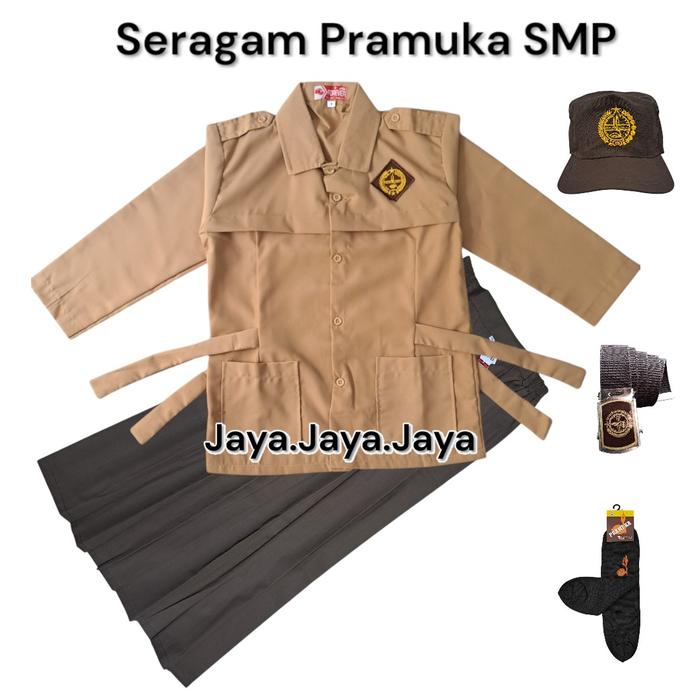 Setelan Seragam Sekolah Pramuka SMP Anak Perempuan Super Lengkap Baju Panjang Rok Panjang