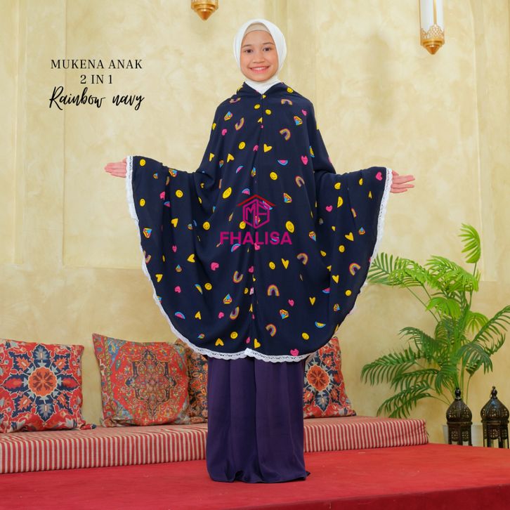 Mukena Anak Perempuan Tanggung Resleting Katun Rayon Premium Motif Bunga Lucu