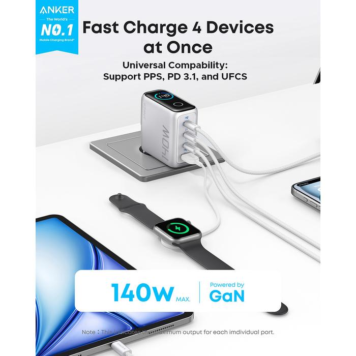 Anker Digital Display 140W Charger With Type C Cable And Powerbank 25.000 Mah 165W Built-In Retractable Cable Gan Fast C