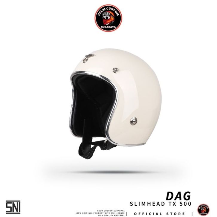 HELM CLASSIC RETRO DAG HELM SLIMHEAD TX-500 CREAM GLOSSY VINTAGE SNI RESMI FREE ONGKIR