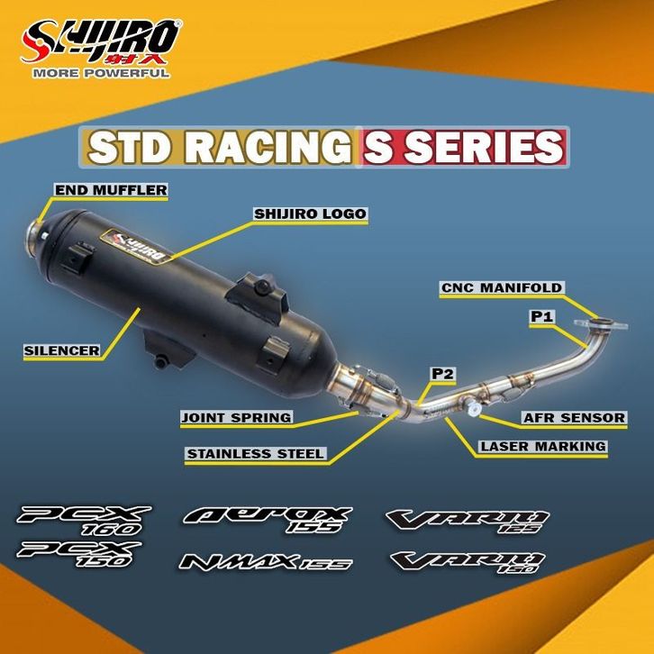 KNALPOT STANDAR RACING SHIJIRO TYPE PERFORMANCE FOR N-MAX NEW N-MAX TURBO