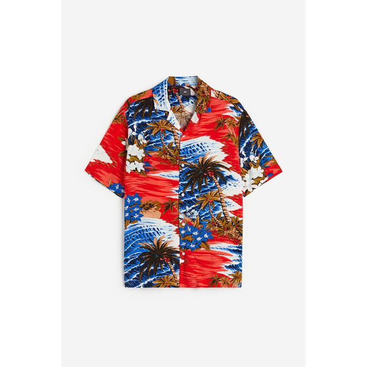 Kemeja Salur Pria H&M Kemeja Pria Lengan Pendek Patterned resort shirt 0656677_2