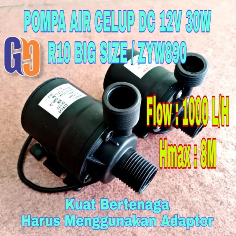 Pompa Air Celup R10 Big / ZYW890 DC 12V 30W 1000LH Hidroponik Akuarium