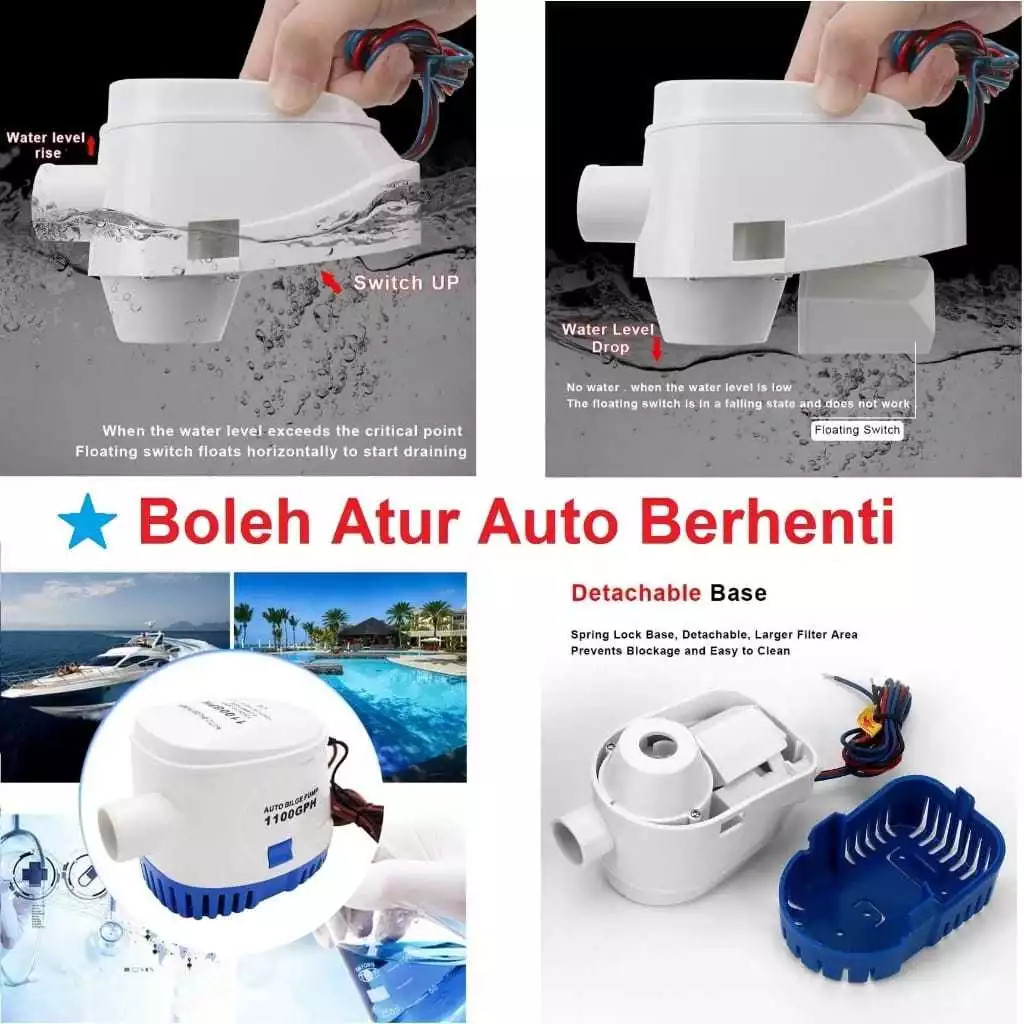 HEEVYDUTY Pompa Air Celup Original Bilge 4200 lph DC 12V Submersible Mini Auto Otomatis Berhenti