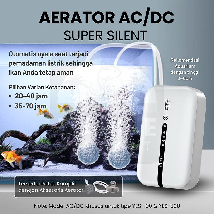 Aerator Silent ACDC Aquarium Air Pump AC DC Usb Airator Cas Baterai Pompa Gelembung Udara Oksigen Mancing Akuarium Ikan