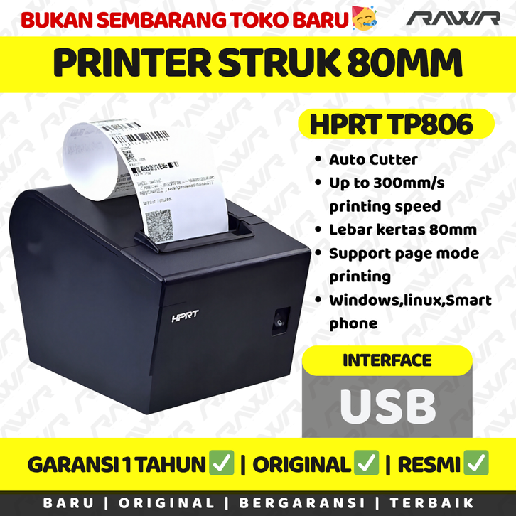 NEW PRINTER THERMAL HPRT TP-806 | KERTAS 80MM | AUTO CUTTNG | USB | PRINTER KASIR SUPPORT HP ANDROID| WINDOWS 10 & LINUX