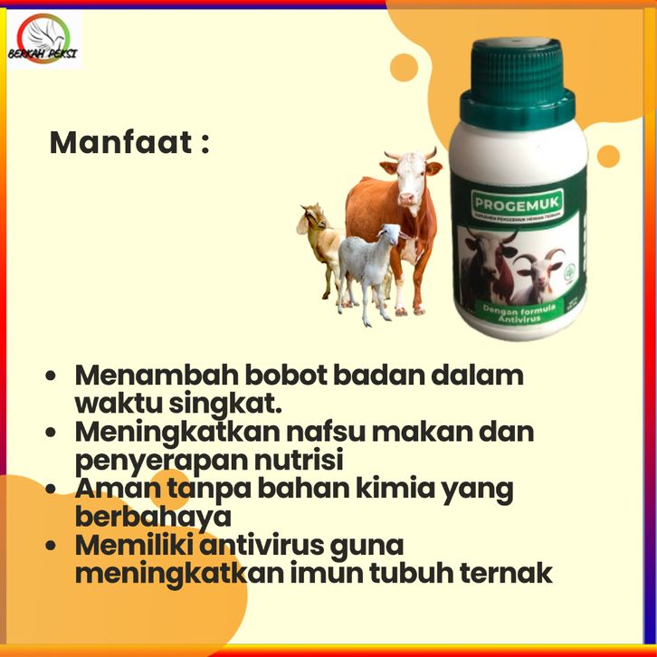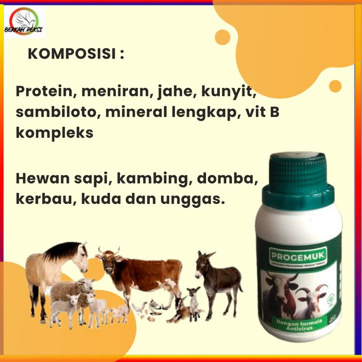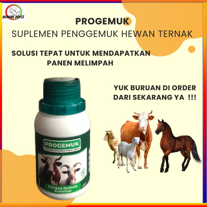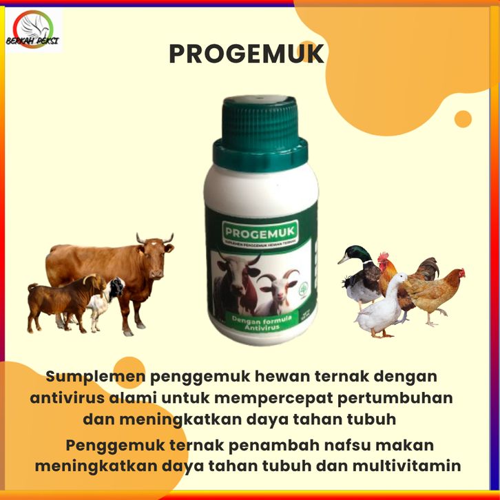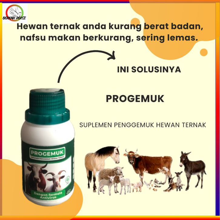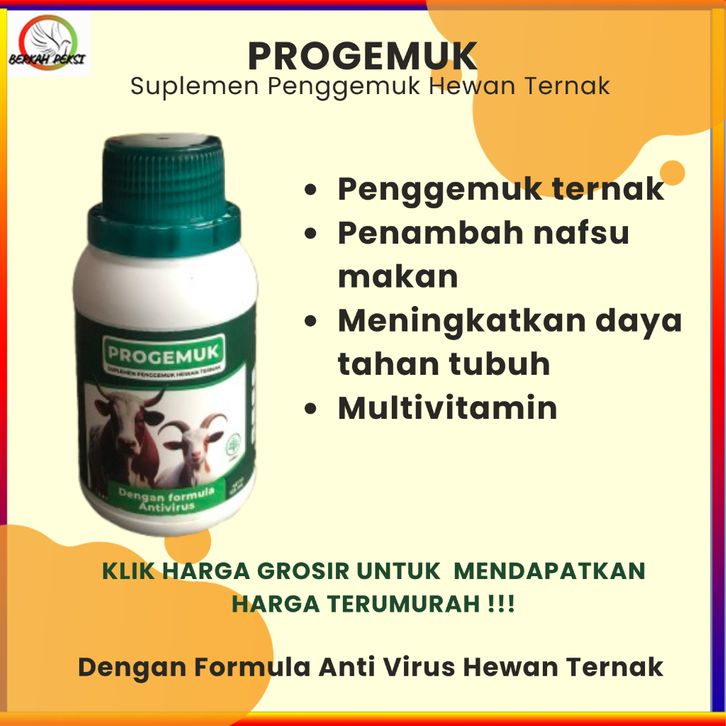 Progemuk Suplemen Penggemuk Cair Hewan Ternak Multivitamin Dengan Formula Anti Virus Sapi Kambing Kuda Babi Dll