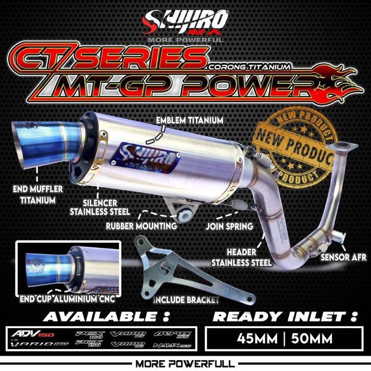 KNALPOT SHIJIRO RACING TYPE CT MT GP POWER FOR AEROX N-MAX VARIO PCX ADV AEROX TURBO LEXY N-MAX TURBO