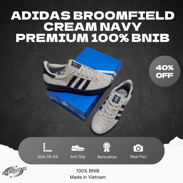 Sepatu Sneakers Pria/Adidas Broomfield Cream Navy/Broomfield Blue BNIB Original Made In Vietnam