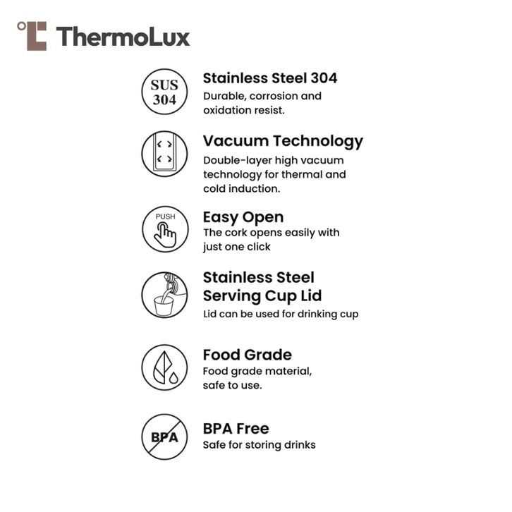 TERMOS AIR PANAS Thermolux TL01M Milk Stainless Steel Vacuum Bottle 420ml | TUMBLER STAINLESS TAHAN DINGIN DAN PANAS