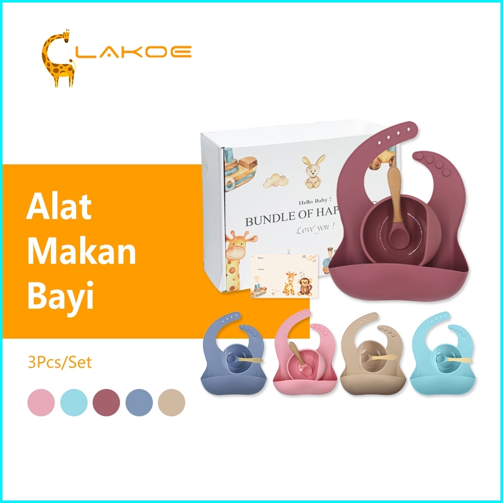 Lakoeofficialmall Celemek Makan Bayi Mangkok Sendok Anak Bayi Silikon Peralatan Makan Bayi