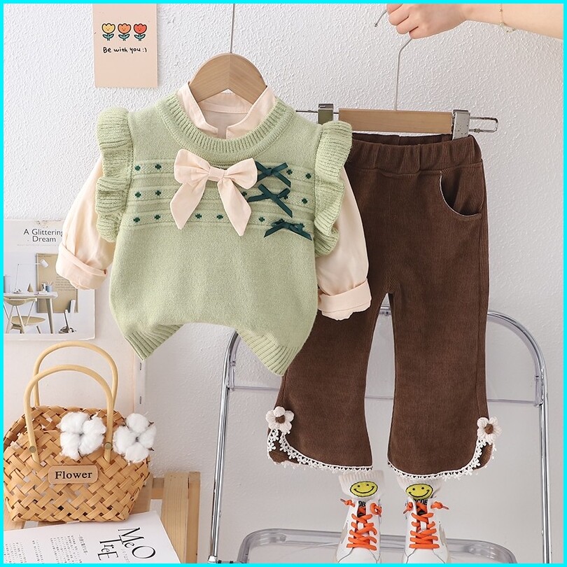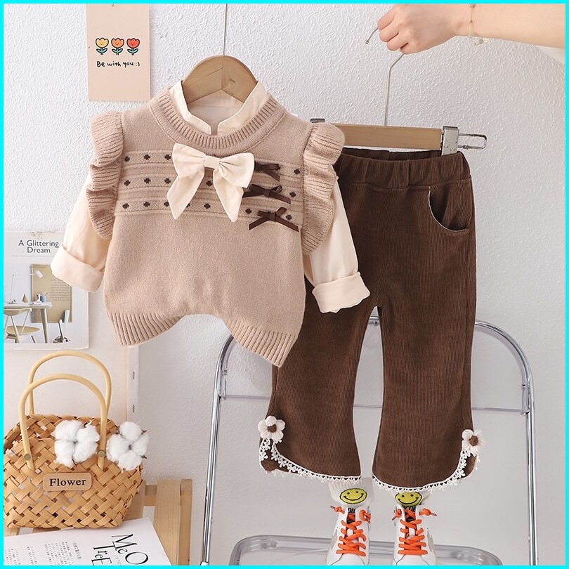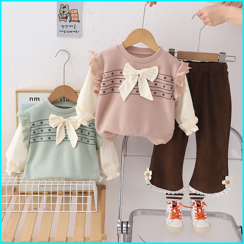 Kidsmains Setelan Anak Perempuan Premium Rompi Sweter Pita Korean Style Set Dua Potong Usia 1-4 Thn