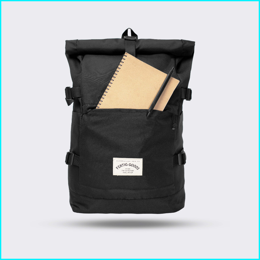Fertig - Ben Black - Tas Ransel Pria Wanita - Backpack Rolltop - Tas Sekolah - Muat Laptop Sampai Ukuran 15 5