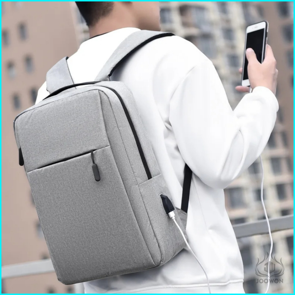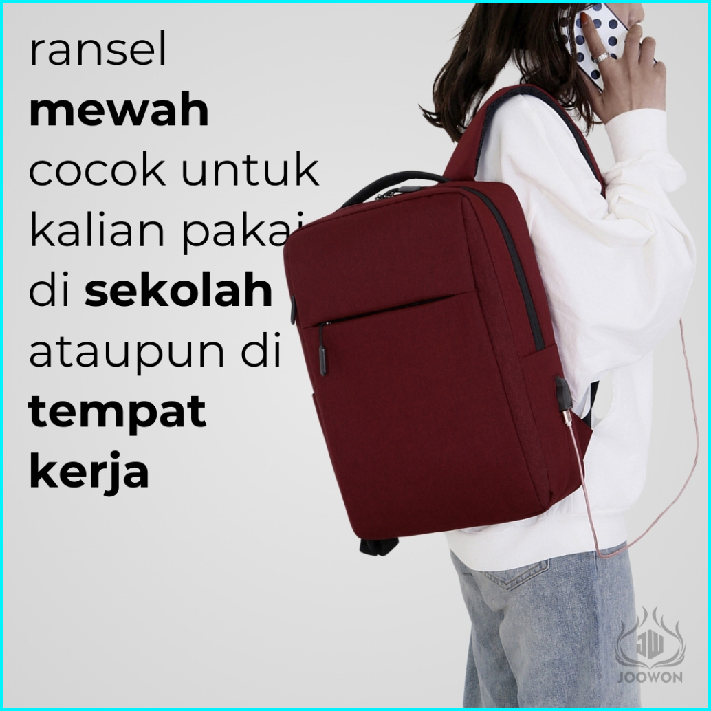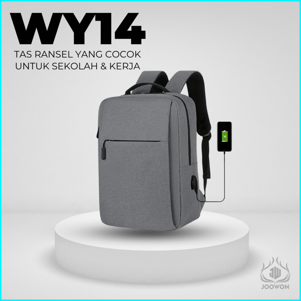 Tas Ransel Sekolah Kerja Kuliah Backpack Kanvas Import Port Usb Trendy Unisex Korean Style - Wy14