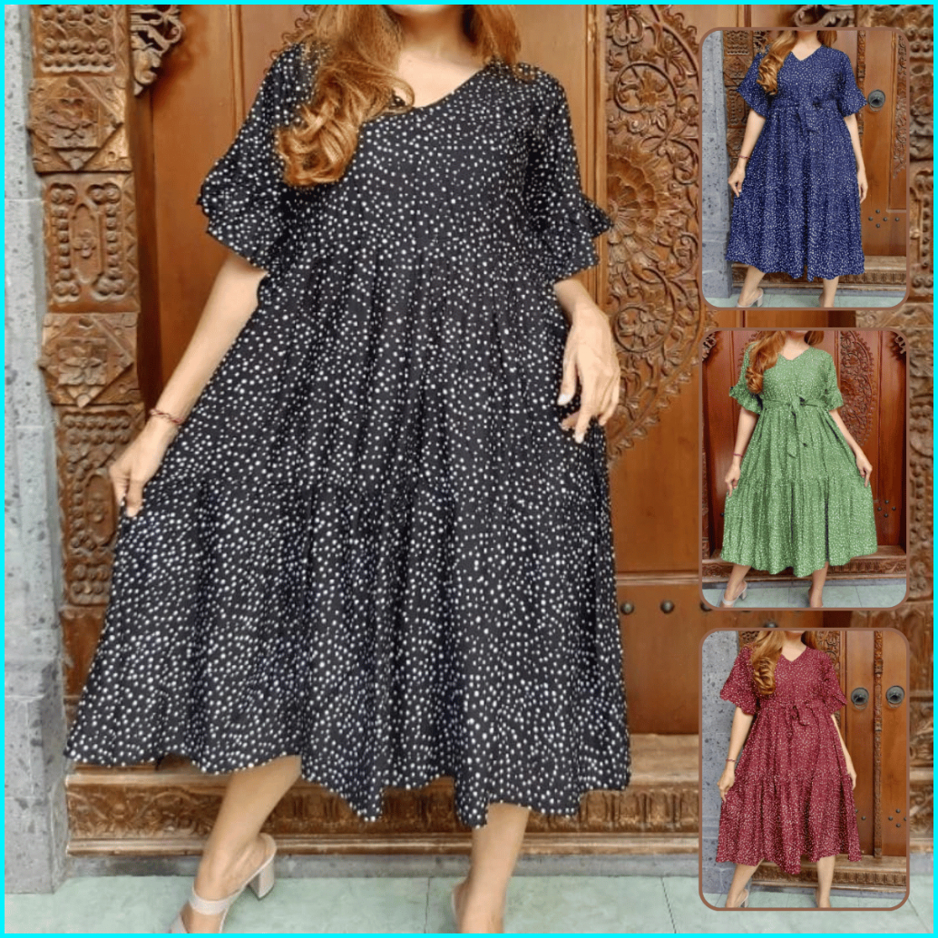 Daster Kekinian Dress Busui Resleting Depan Short Dres Polkado Rayon Premium Jumbo
