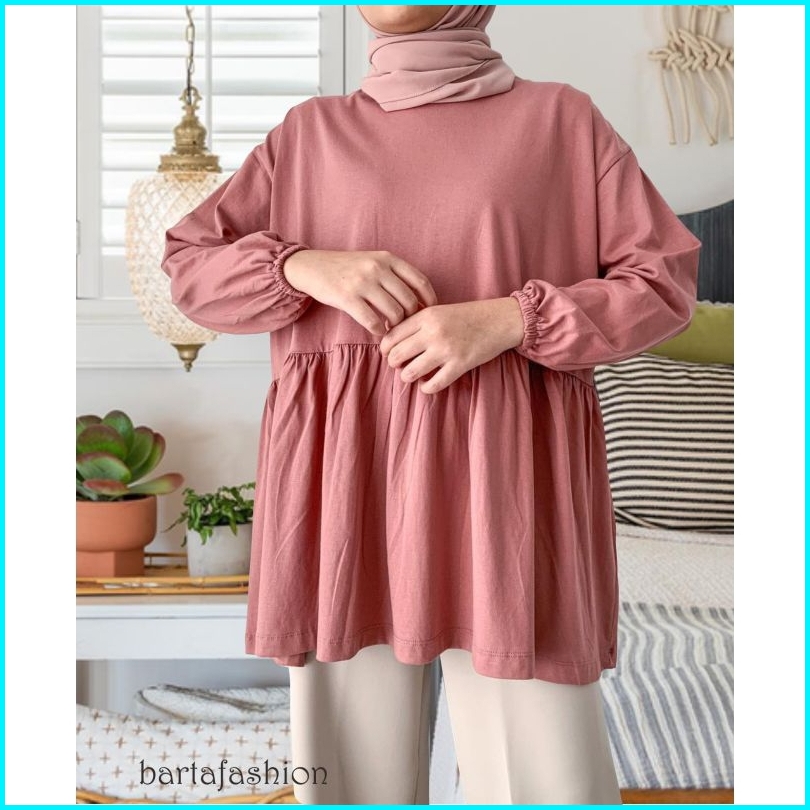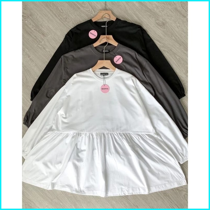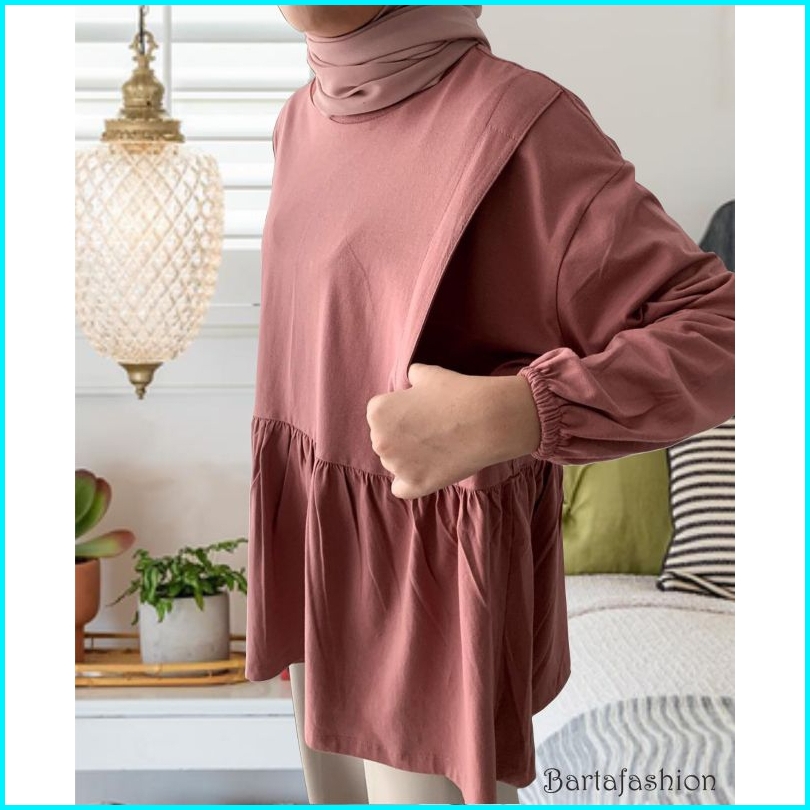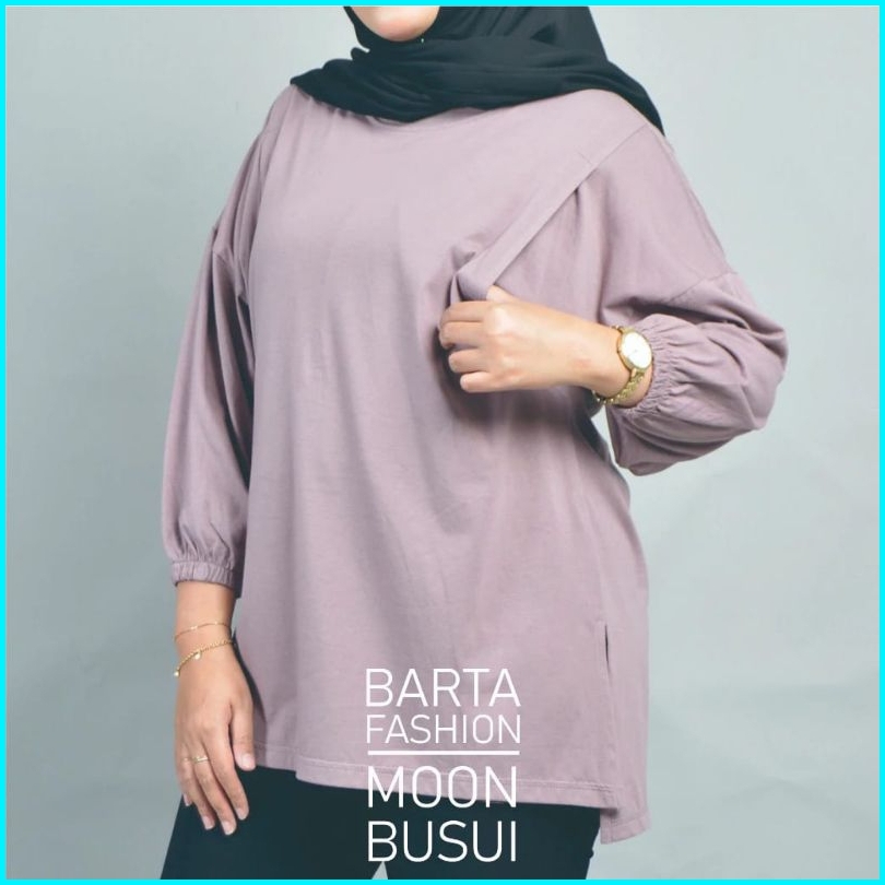 Moon Dan Ruffle Kaos Oversize Lengan Panjang Busui Friendly Bukaan Kanan Kiri Katun Combed 30s