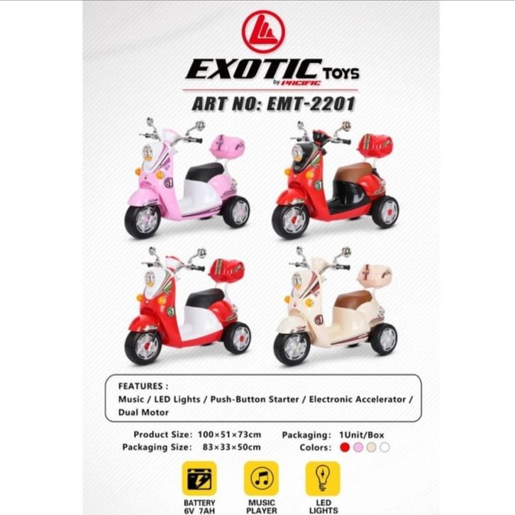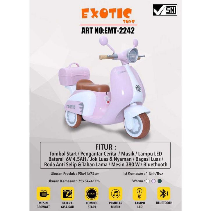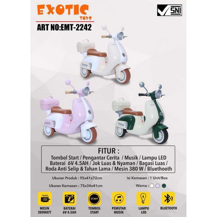 PROMO MAINAN ANAK MOTOR AKI - EXOTIC EMT-2242 VESPA PLUS BOX / EXOTIC EMT-2201 / EXOTIC EMT-2237 /
