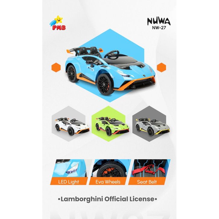 PROMO Mobil Aki Anak LAMBORGHINI NUWA dari PMB NW27 NW-27 Lisensi Resmi Kendaraan Mainan Ban Karet