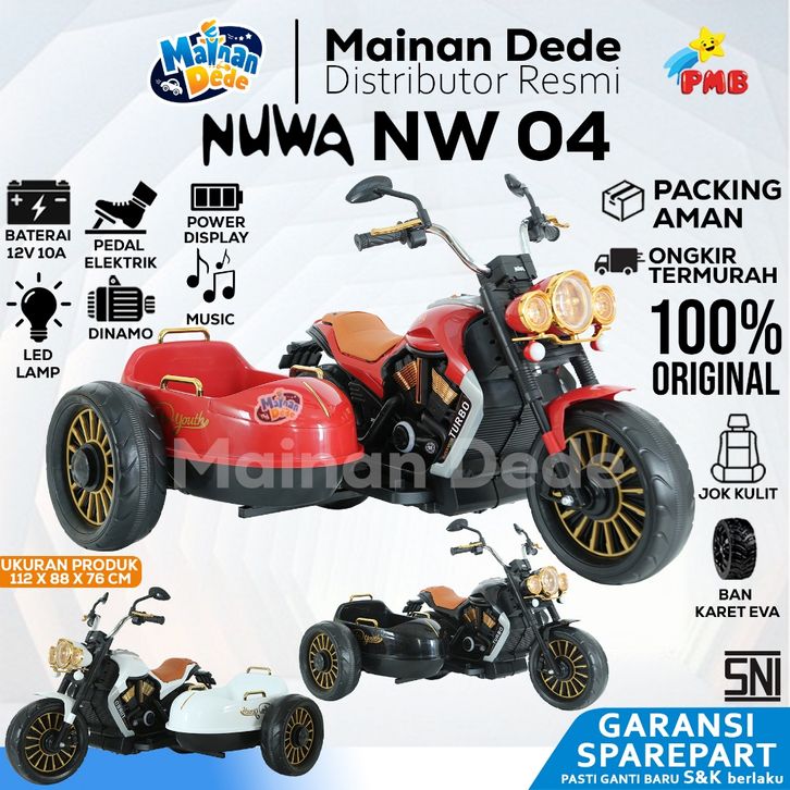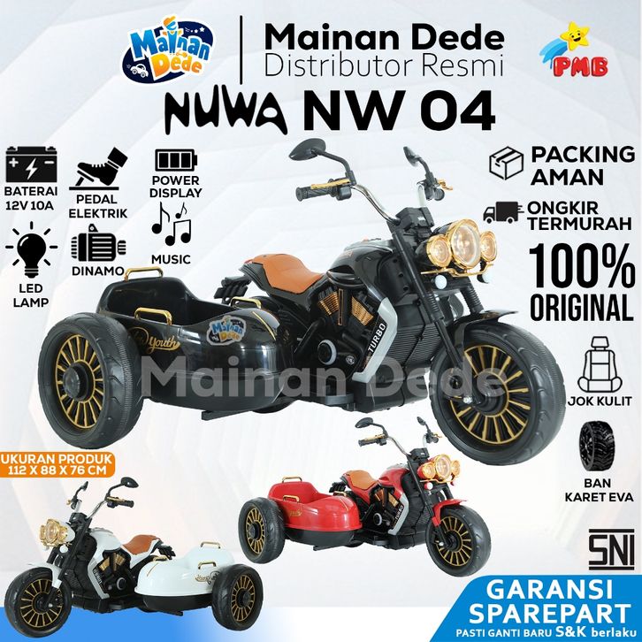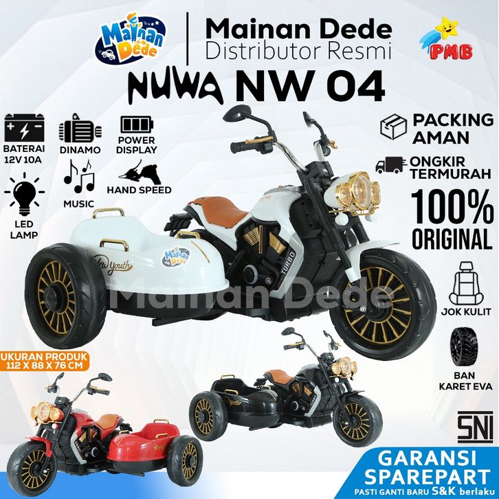 PROMO Mainan Motor Aki Anak PMB NUWA NW04 NW-04 / YUKITA 1588 HARLEY BAN KARET JOK KULIT