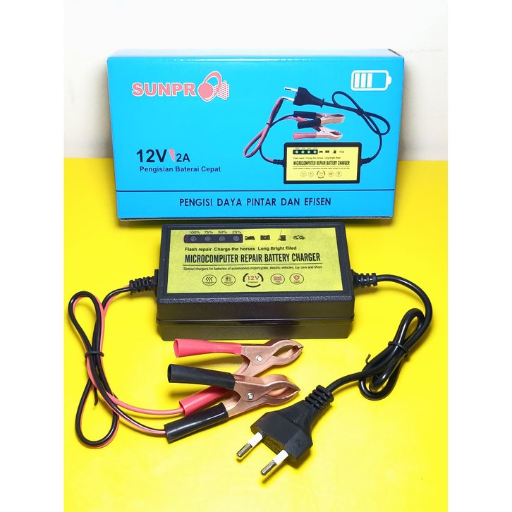 PROMO Cas Aki Motor Charger Aki Sunpro cas aki motor mobil Battery 12V 2a Adaptor cas Aki 12V2A new