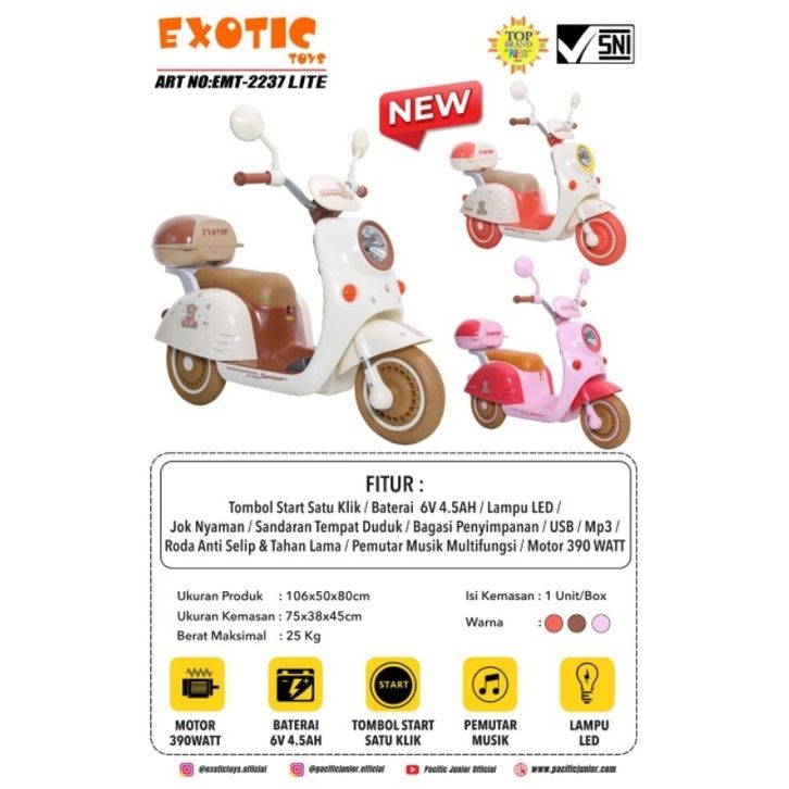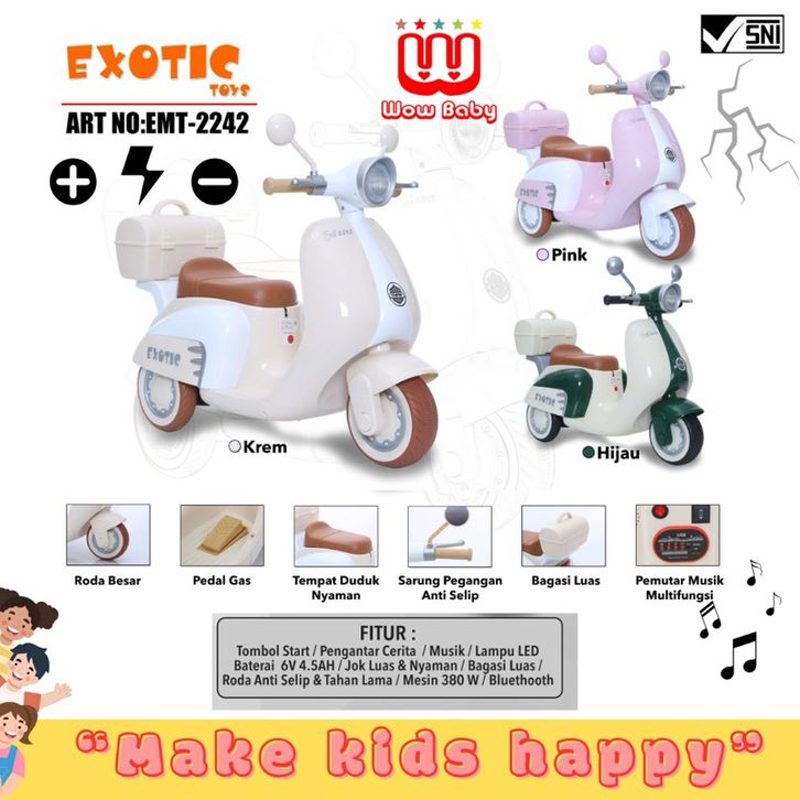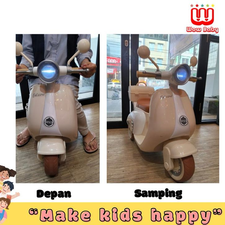 PROMO VESPA aki motor aki anak 2 sd 7tahun emt 2242 emt2237 6volt jok nyaman roda antislip dinamo